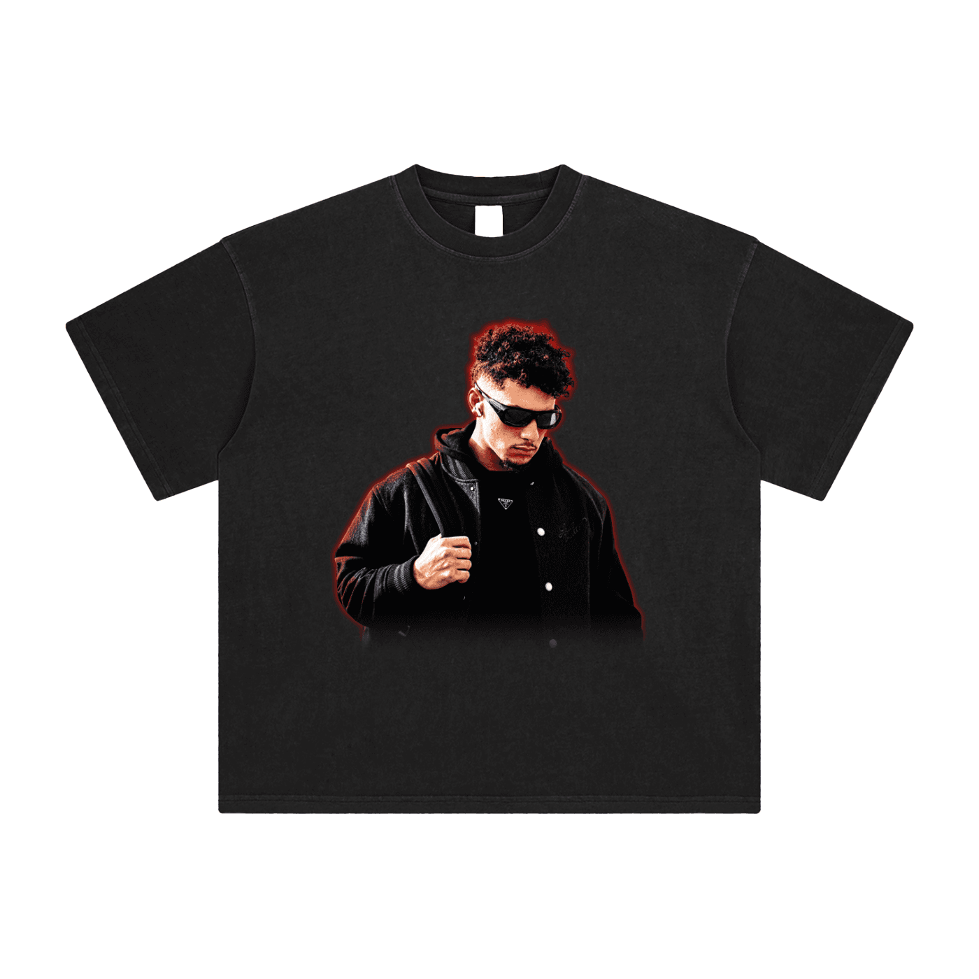 Notes:When printing, the image you uploaded will be covering the original stone wash patterns through DTG technology.
